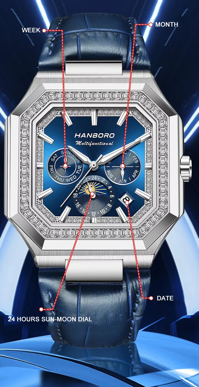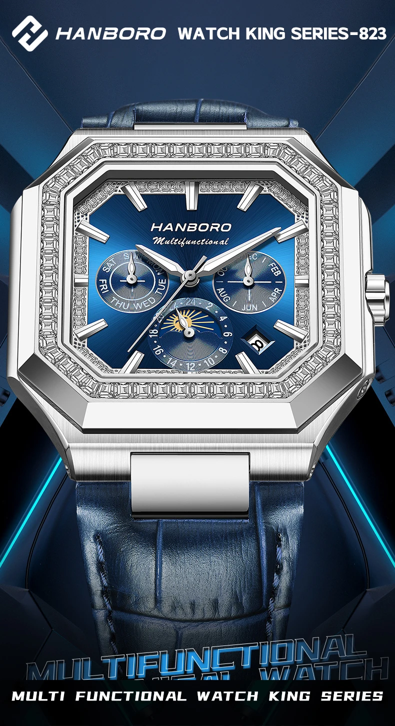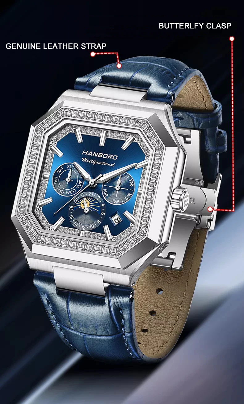 Descubre la elegancia única del reloj HANBORO con su icónica caja cuadrada de 38mm. Equipado con el prestigioso movimiento Shanghai JHS08, este reloj automático combina artesanía tradicional china con diseño contemporáneo.